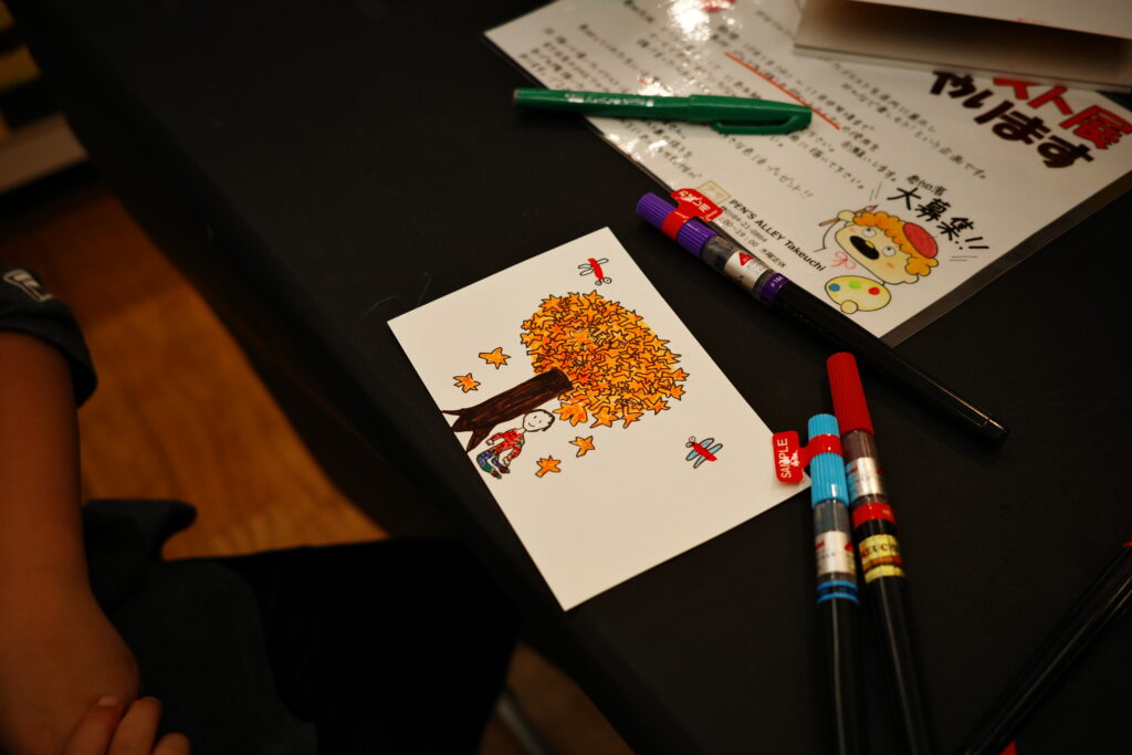 お店の人に渡すと好きな色のペンを一本もらっていました。