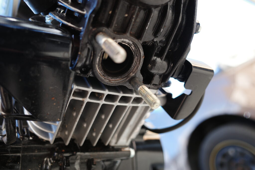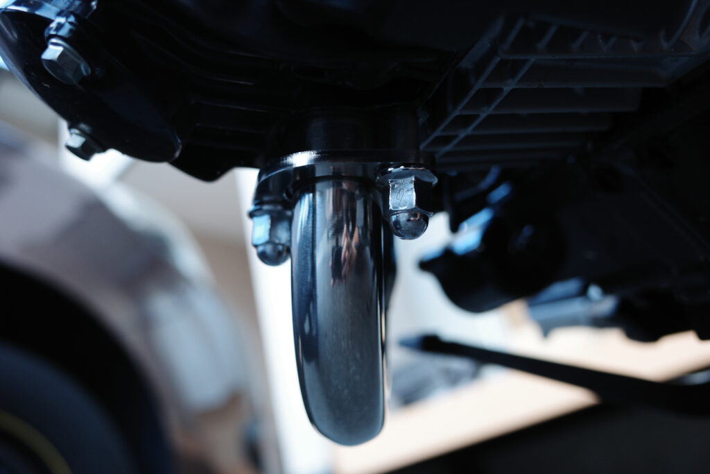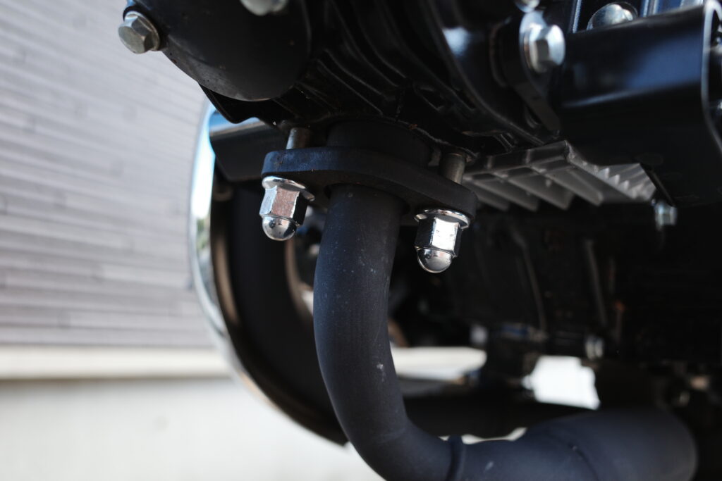 下側のボルト一か所は最後に外すとマフラー本体が不意に落っこちて傷つくのを防げます。