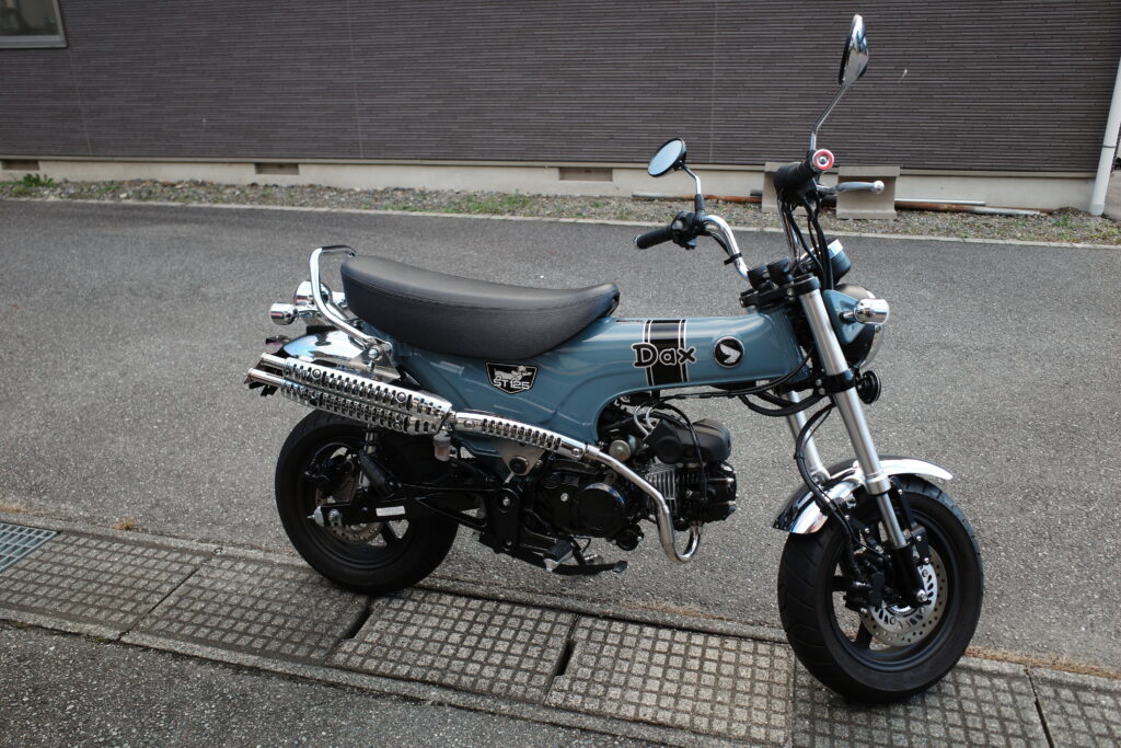 CL72?昔のスクランブラー感、ヒートプロテクターのレトロな感じがDaxにマッチしていると思います。好き。