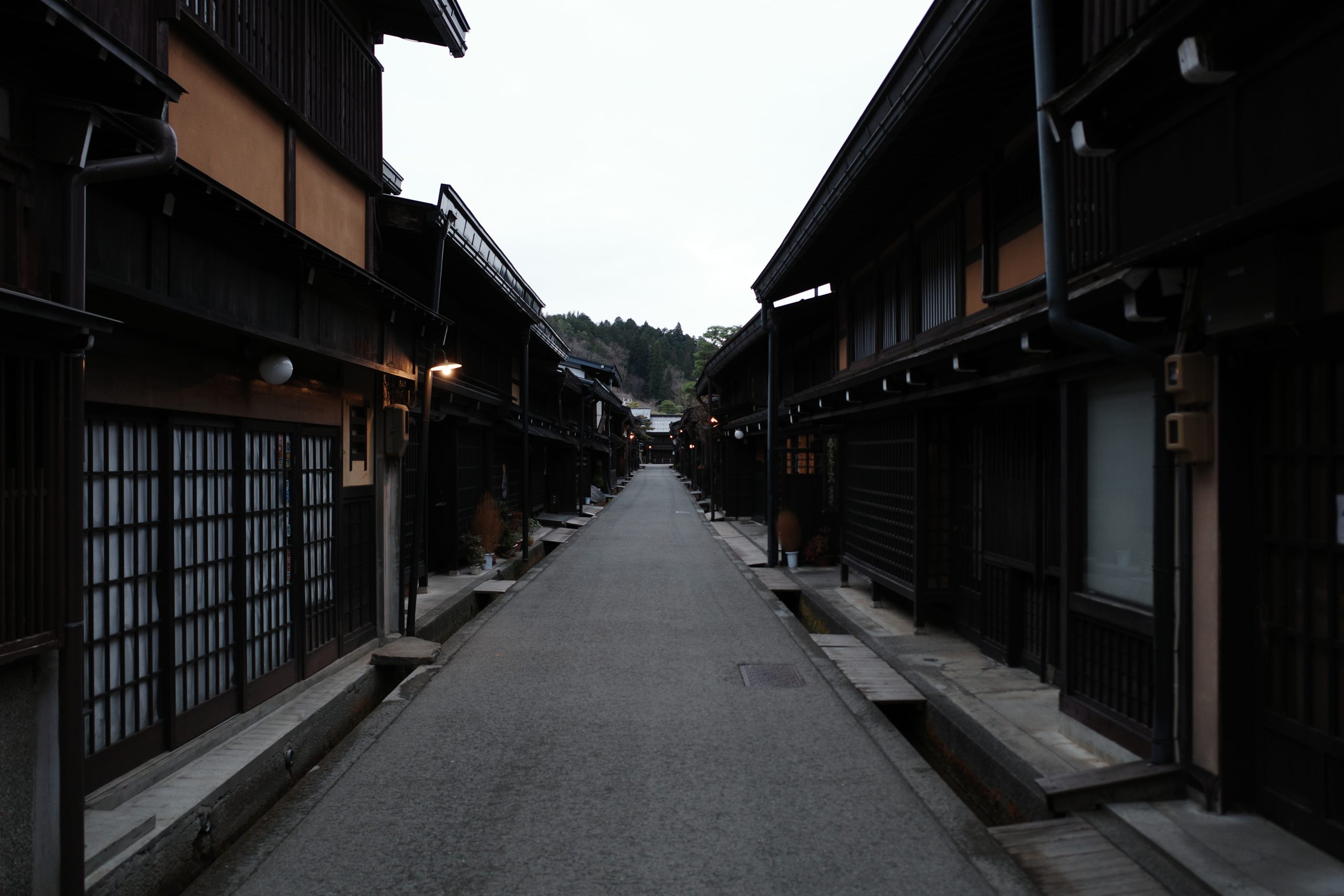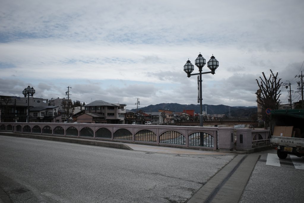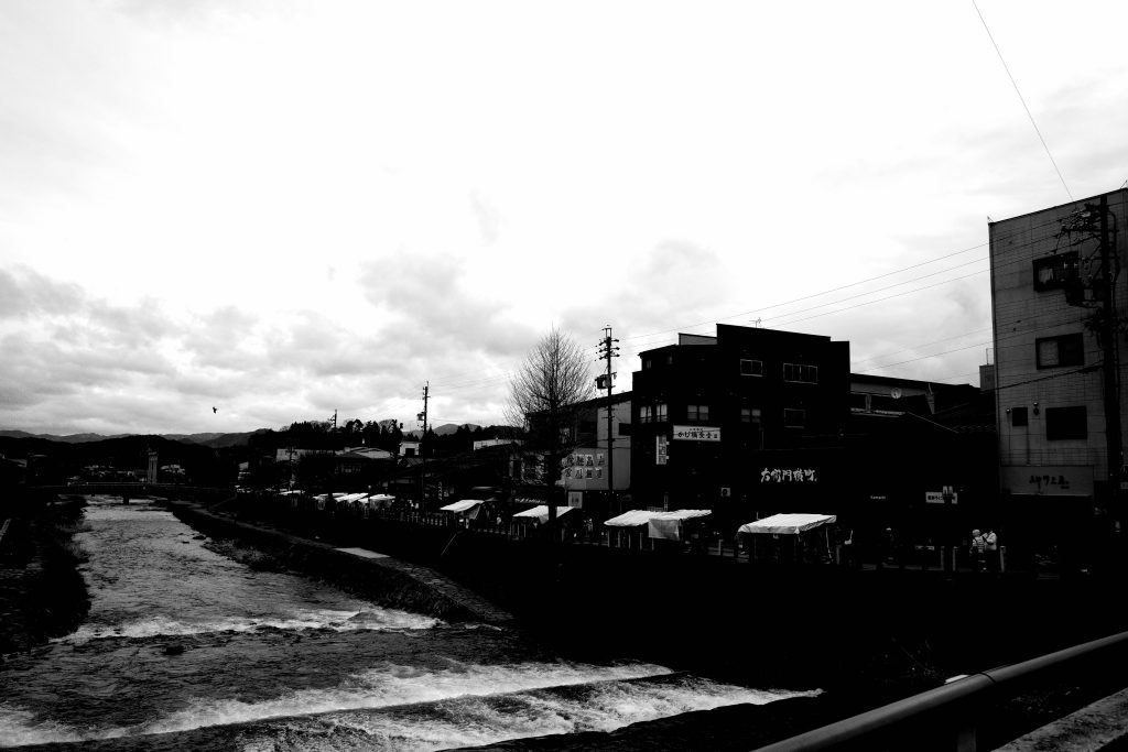 道中、飛騨高山 宮川朝市を抜ける頃、少し晴れてきた。