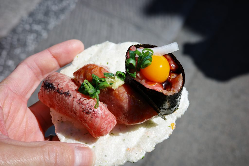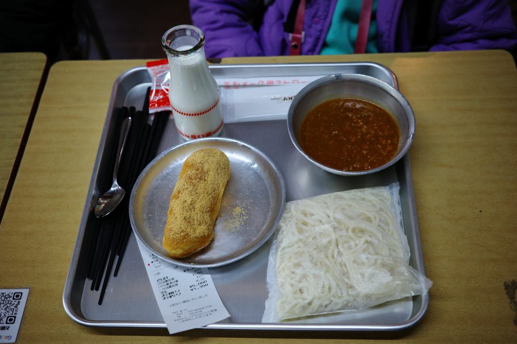 給食分け分けして食べたけどもう少し食べとこってことで、にぎやかな街で食べ歩き。
