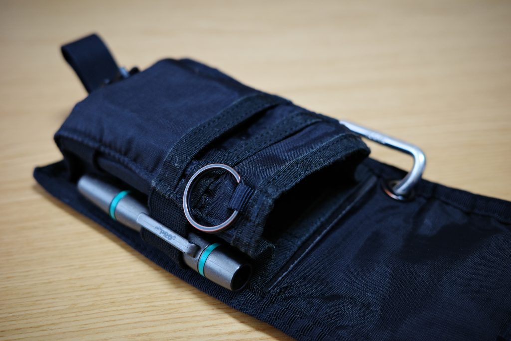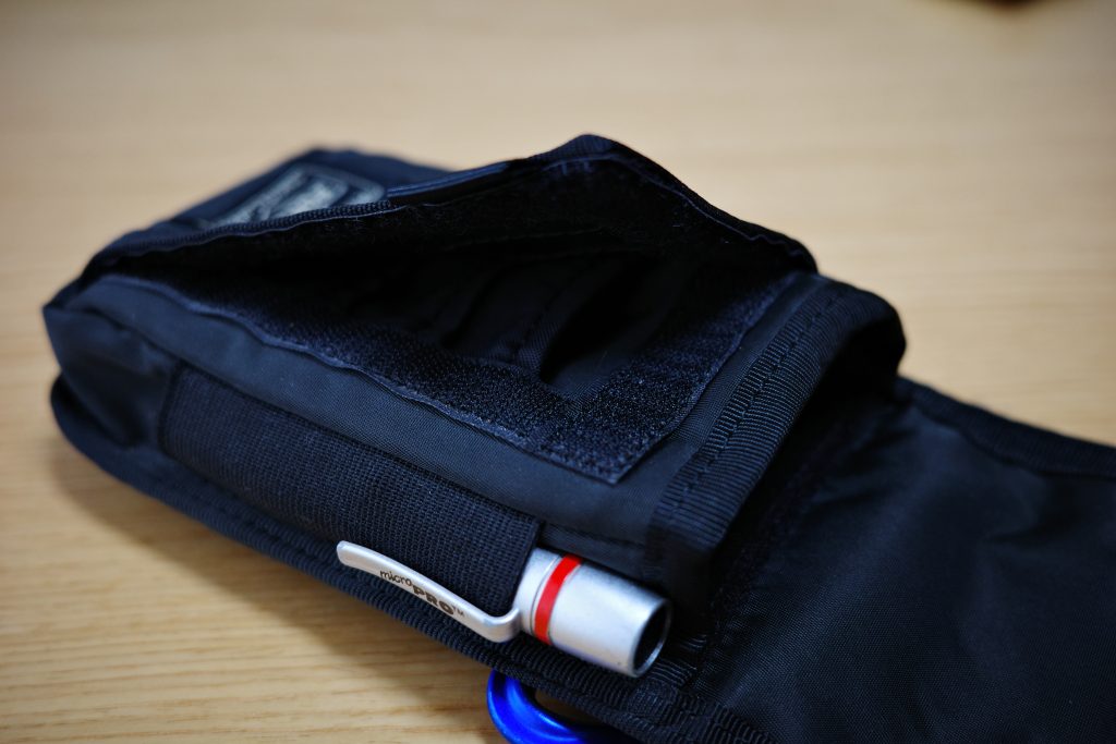 私は内側のポケットにSDカードの予備、外側のチャックのポケットにGRの必需品スペアバッテリー、サイドのゴムバンドにハクバレンズペンを入れてます。