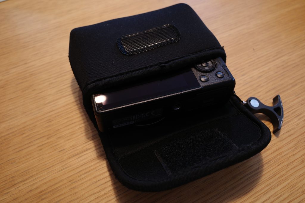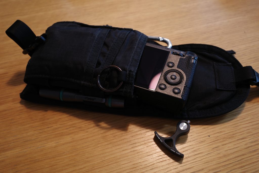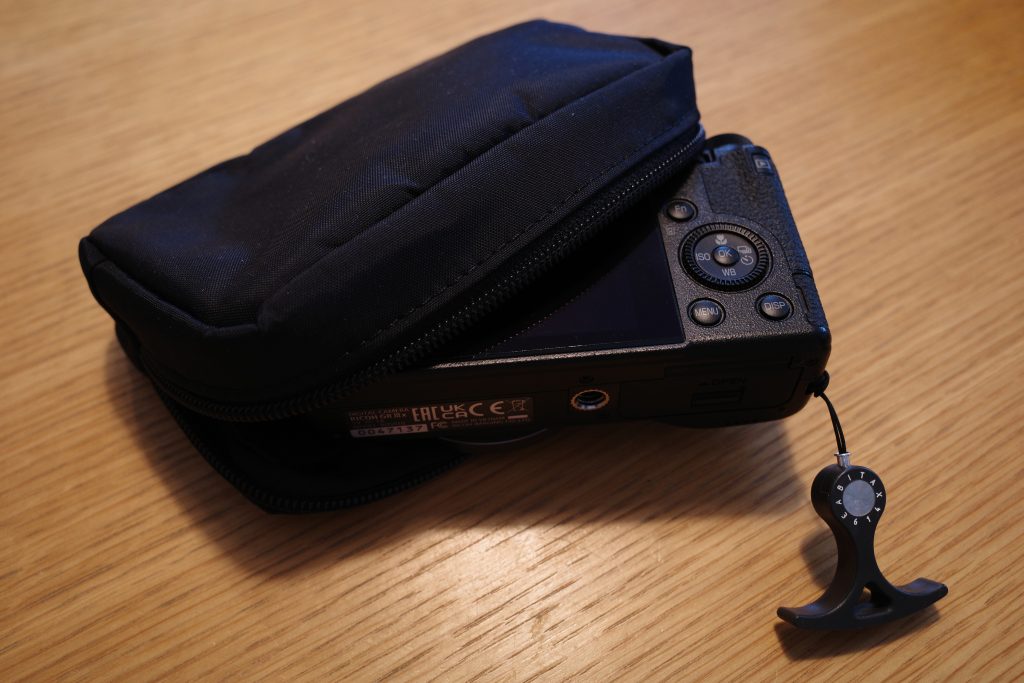 私は現状GRⅢに外付けファインダーを着けてこれに収納しています。ゆるゆるで、ファスナーなのだけど。。