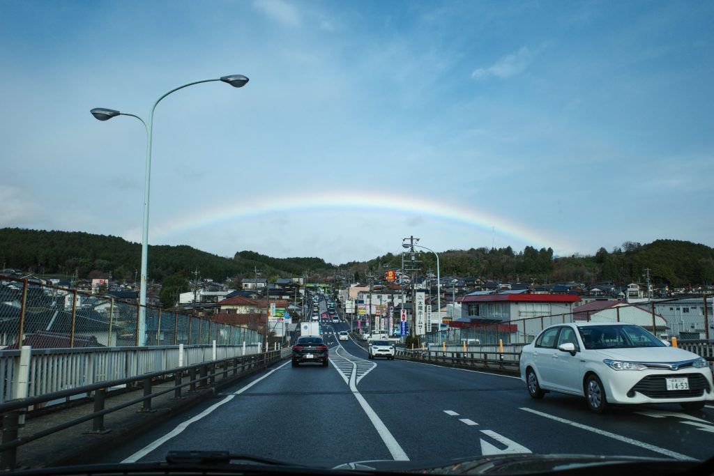 道中虹も出て幸先良いです。虹を見るとみんなテンション上がるよね。