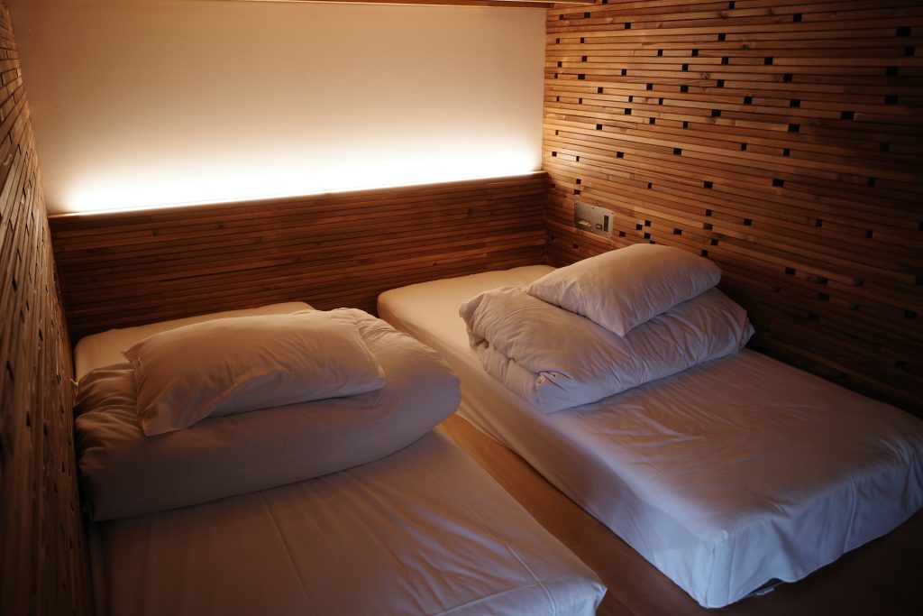 センス良い館内、二階ベッド、子供たちも喜んでいました。子供は迷わず上段。