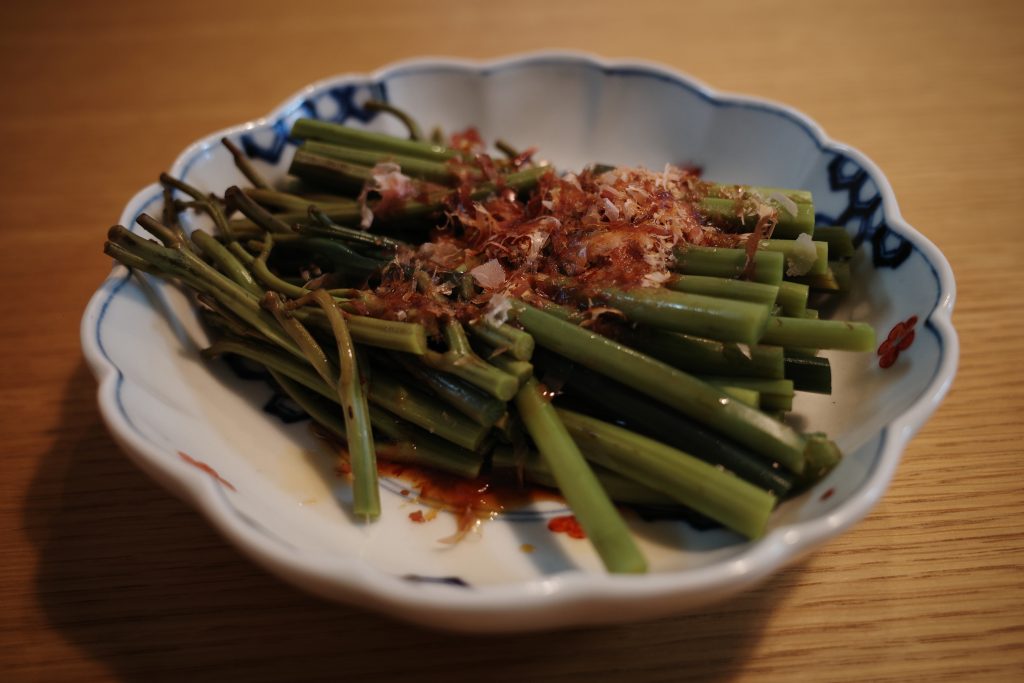 あく抜きまでは実家でしてくれるので醤油と鰹節をかければ完成です。