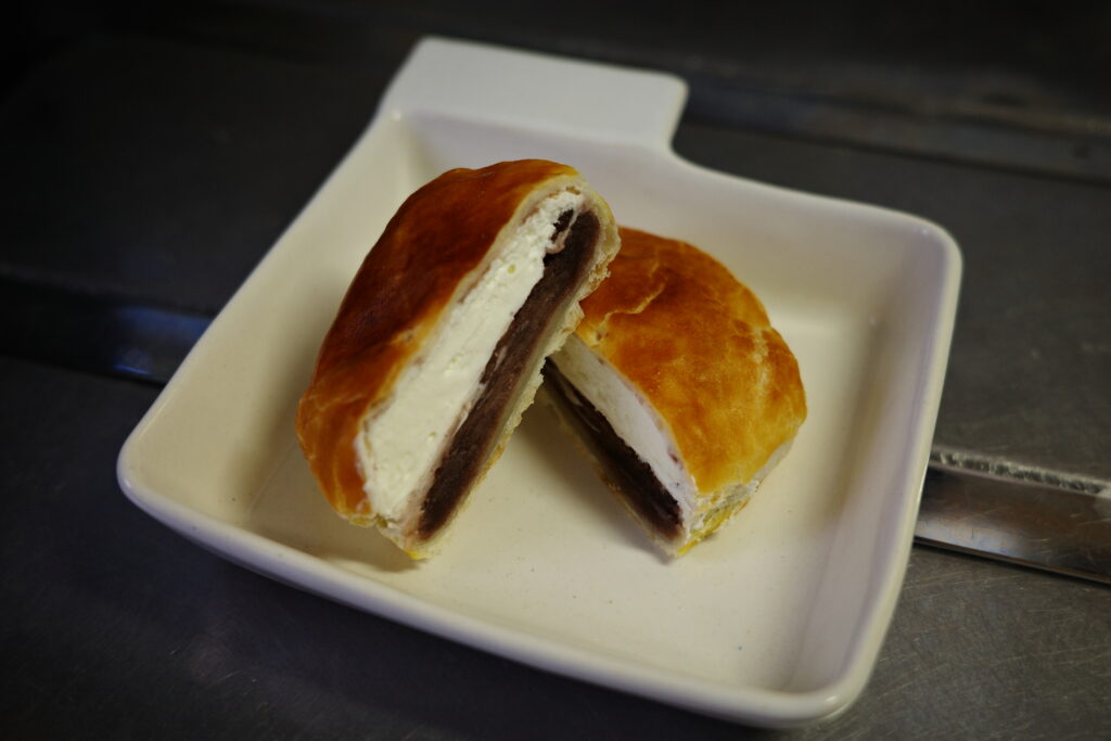 札幌市の千秋庵さんのノースマン。小豆餡をしっとりパイ生地で包んだ人気商品。