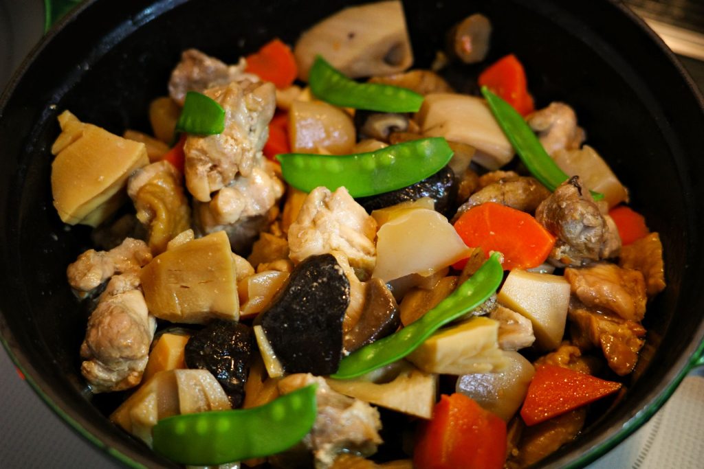 筍や蓮根、牛蒡、こんにゃく、咀嚼をしかっかりしましょう。