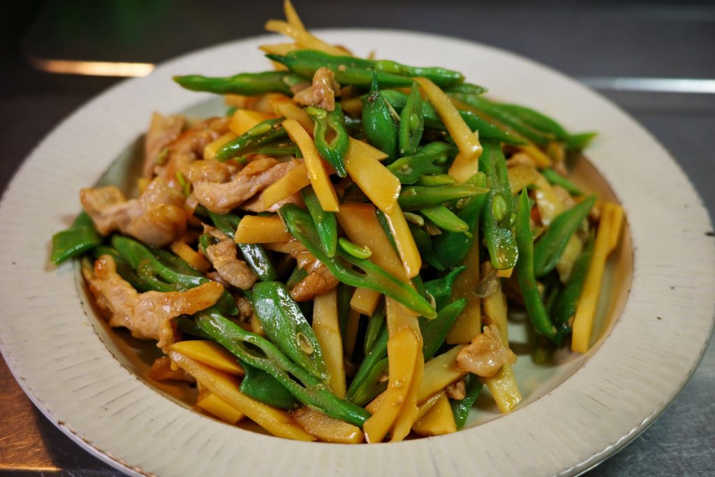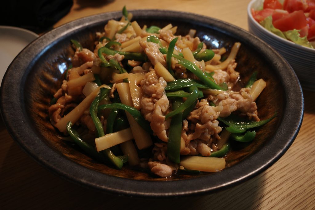 適当に豚こまで作ったり、いんげん大量消費のために使ったり。ところで筍の細切りって難しいよね。